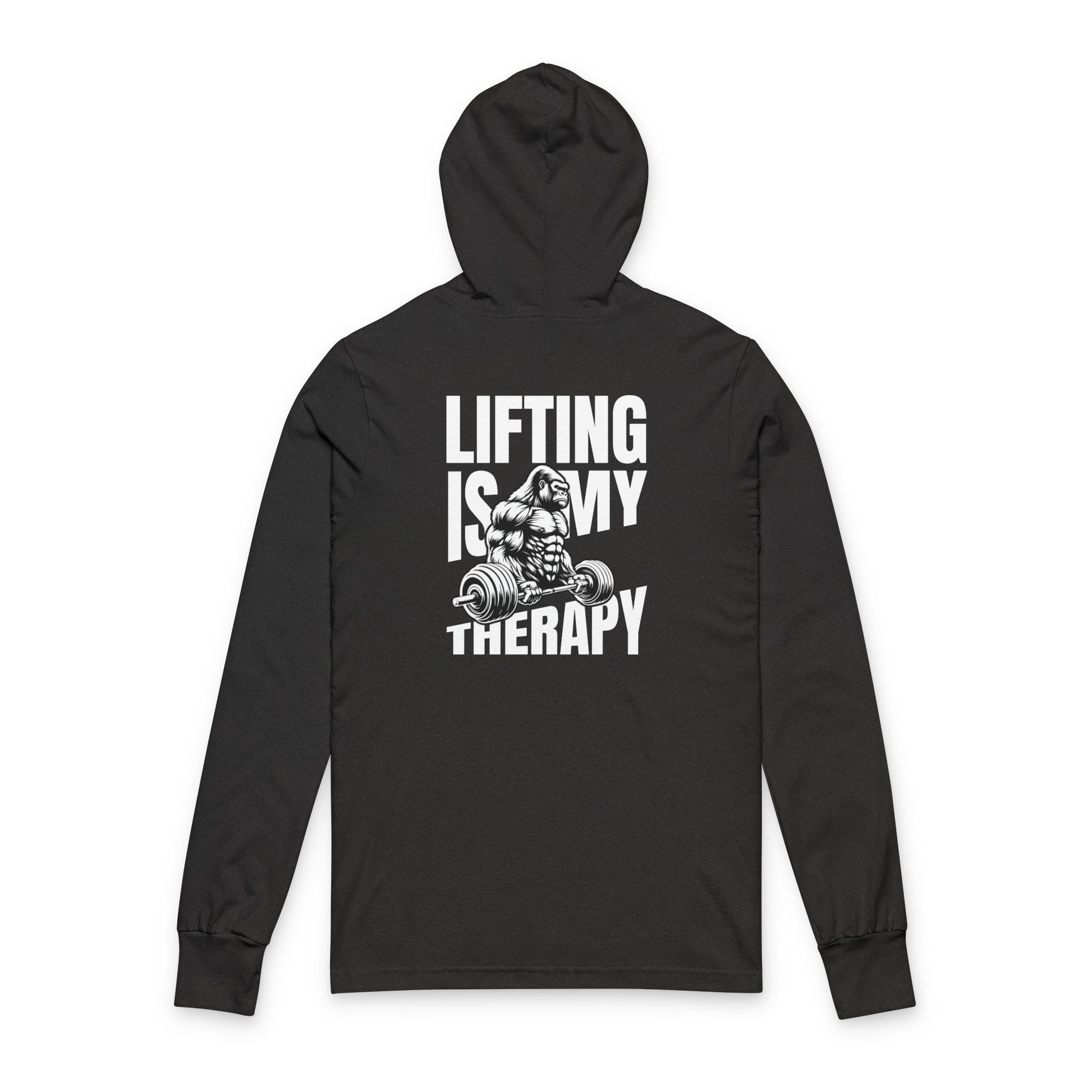 Gym Gorilla Hooded Long Sleeve Tee — Weightlifting Barbell Back Print